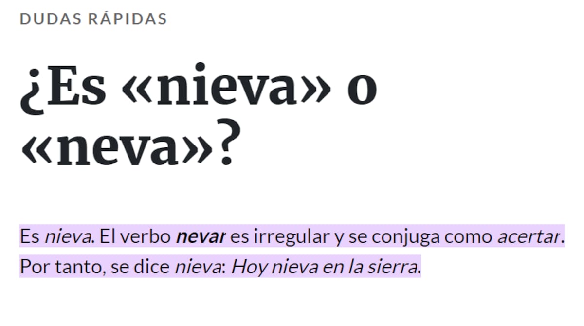 ¿Cómo se dice correctamente: "neva" o "nieva"? Esto dice la RAE