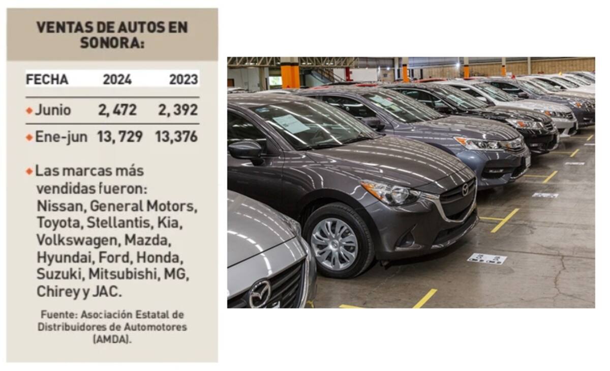 HERMOSILLO, Sonora.- La venta de vehículos cero kilómetros en Sonora creció en el mes de junio 3.3% con relación a la misma fecha del 2023, al cerrar con 2 mil 472 contra 2 mil 392 y el incremento en el primer semestre fue del 2.5%.