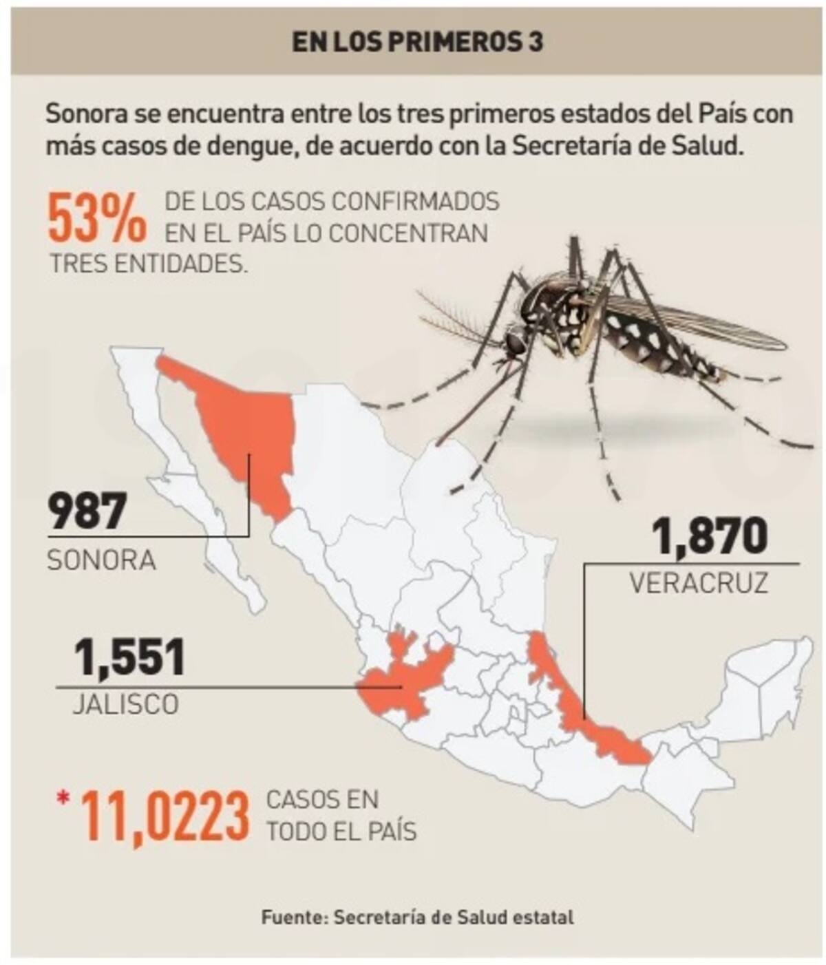 HERMOSILLO, Sonora.- — HERMOSILLO, Sonora.- El dengue se disparó en Sonora con 987 casos acumulados este año, casi el triple que en 2024, situación que genera un impacto económico en familias vulnerables, quienes deben cubrir gastos médicos y enfrentar incapacidades laborales, indicó la epidemióloga María Elena Reguera Torres.